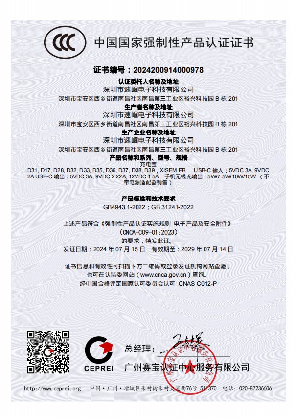 • 产品认证:PSE/CCC/CE/FCC/RoHS全体系通过