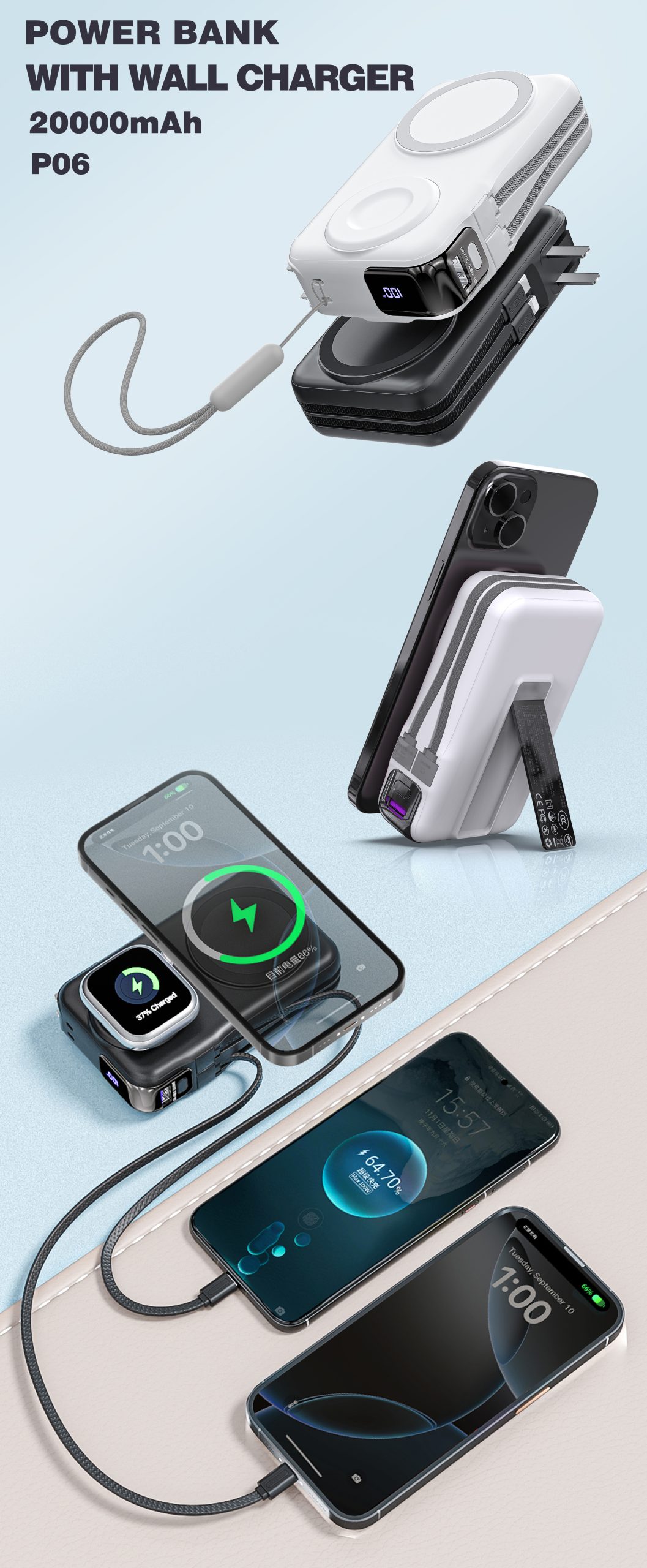 10000mah自带支架可拆卸的磁吸无线充电宝